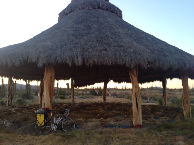 As far as riding, we never know how many kilometers we will do each day, where we will sleep or who we will meet a long the way. Sometimes we meet people like Eugene whose grandparents created the town of rancho Calamata. It’s a town with the population of two buildings, 5-6 people, 20 cows, 3 horses, 20 chickens, 2 peacocks, 3 dogs and 1 kitten. The only have solar panels and make money from truckers and having a restaurant. Eugene continues to tell us the story of his father in 1925 who met the governor or Mexico who actually came to meet the father and telling him news that they were going to build a road through Baja. The father was not pleased and continued to tell the governor that he wouldn’t live to see the day that happened. Well a couple decades later and sure enough the road was built and the father was greeted by the governor again but this time with the first car he had ever seen in his life a ford from the states. He ended up driving the car and accepting that the road was built. Eugene tells the story with such “animo” or enthusiasm that it makes you want to make a film out of the stories he tells. What a crazy bunch of people in that town we spent one night there and he gifted us coffee and water which was essential for our voyage.