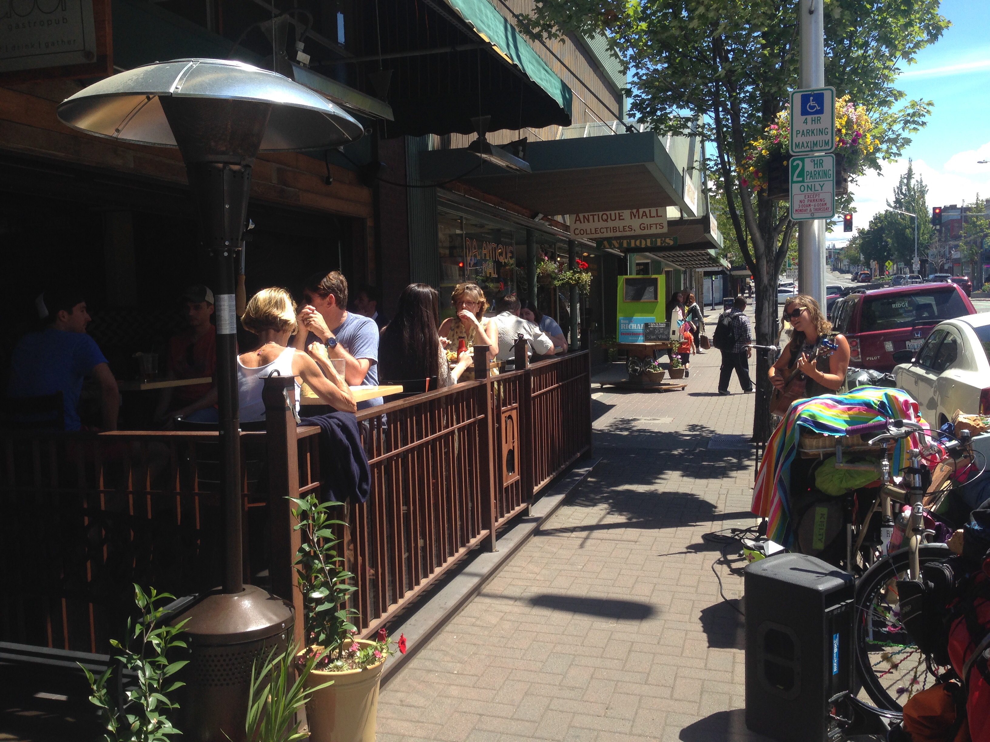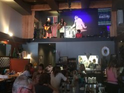We arrived in town and wanted to play a show so we asked a bar owner we met on the ferry if we could play at his bar. Two hour later we were on stage praise on the sidewalk and then later elevated on a second story stage that looked down upon the bar. At the bar called “next door” we met a man who let us crash at his place less than a mile from downtown and the venue we were playing around. So many nice people along the way! Yipppeee! The outdoor sidewalk concert quickly turned into a full on elevated stage venue inside and we played a couple hours on this stage that was on the second story looking down onto the bar. A pretty amazing venue.