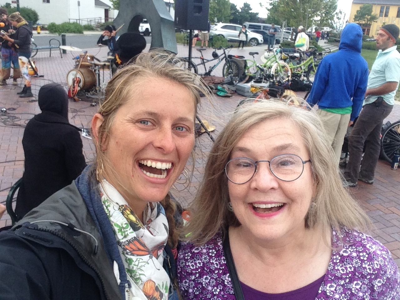Marion let me know that she has a son and family in port Townsend so I grabbed the number of drew. The next morning after we camped at a clearing in the fleet and made a lovely fire. We stopped for gas at a gas station and sure enough there came Pamela and Drew running to our group of cyclists and asking “Which one of you is Molly?”. They had found our group and the reunion was beautiful. The last time I saw them was apparently when I was only a couple of months old and I was in their wedding. They are Keen’s as well! I loved meeting them and getting to know them. I invited Pamela to our show and she came for the whole set with chocolate and gifts included! She was so sweet to connect with and just retired from working for the library for 25+years! What a treat it was to be able to get to know her!