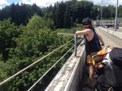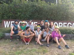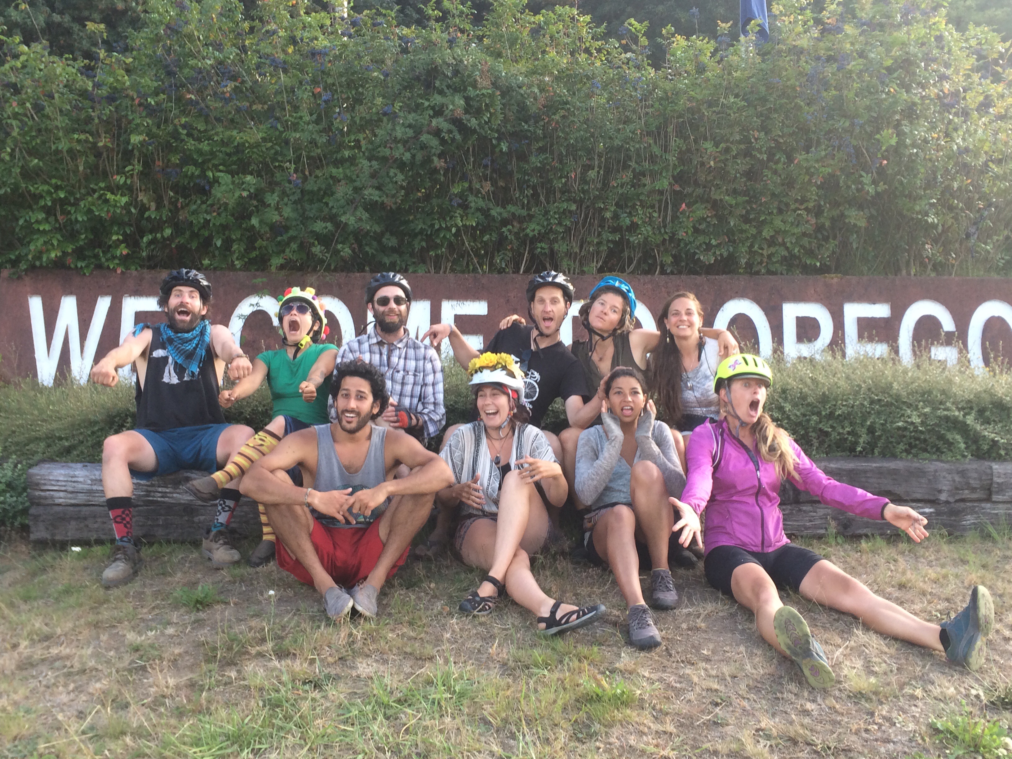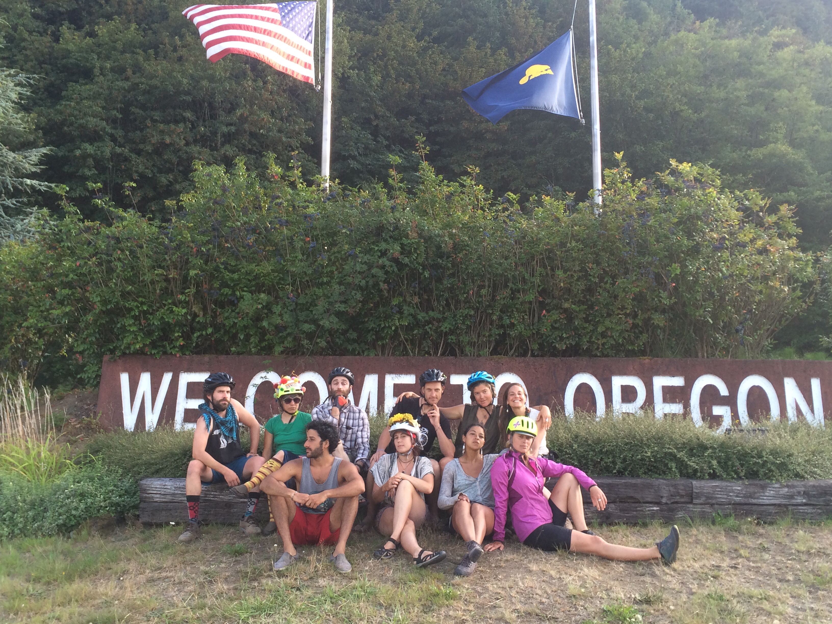 Here is the group at the welcome oregon sign. There was an epic bridge that we cycled over and actually just a weekend after the famous Seattle to Portland ride so there were still sings on the ground welcoming riders and showing them the way.