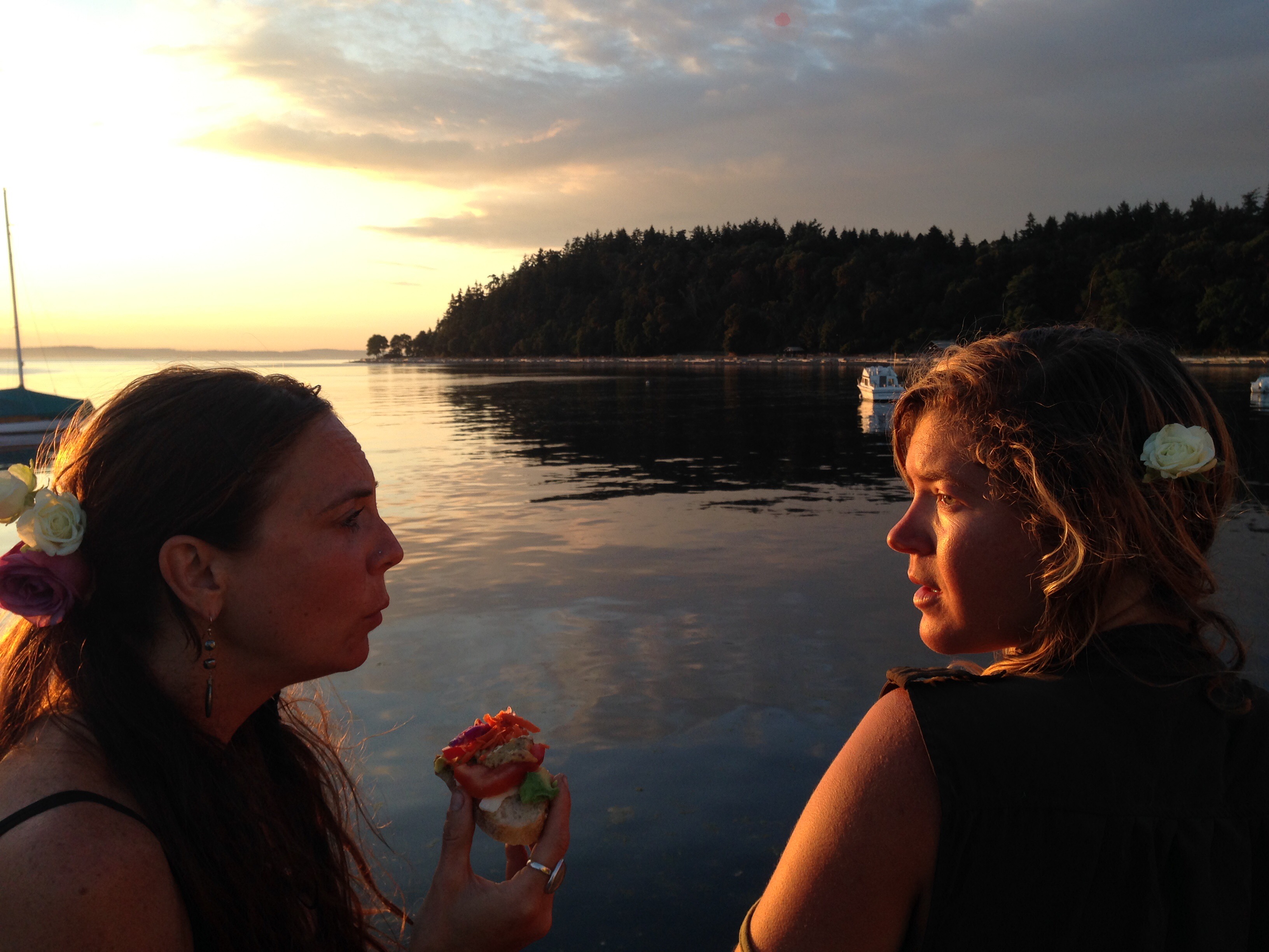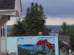We had some friends on Vashon host us, and we had a beautiful night falling asleep to the orchestra of frogs and animals outside. The next morning I met for coffee with Alice, my old neighbor and friend of my mother’s that I grew up with. She lived next door to our cabin on paradise cove. It was great to catch up with her and get a coffee and treat. Later Michelle, Carolyn, Adley and I went to my mother’s grave and spent some time there. My bicycle flipped over at the grave site. It had never done that before. Of course, we had to got to the bicycle in the tree. The infamous and beautiful tree! I remember going there as a child and seeing the way the tree would change crushing the bicycle alive!