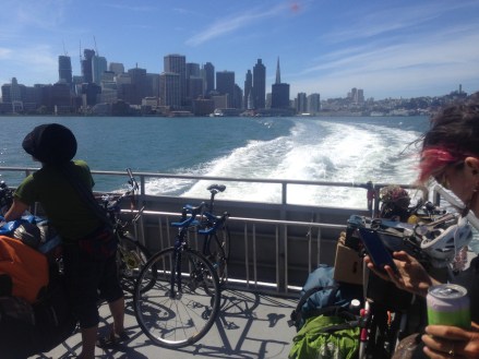 For the final 20 miles, we decided to take a ferry into San Francisco. We were able to fit all of our bicycles and it was my first time to get into San Francisco that way. We were all so excited to see the city and it felt so weird to see that familiar city skyline. It had not really sunk in until that moment for me. We are home. My bed is close by. We are not sleeping in tents anymore! It was a very strange feeling I can not quite describe it.