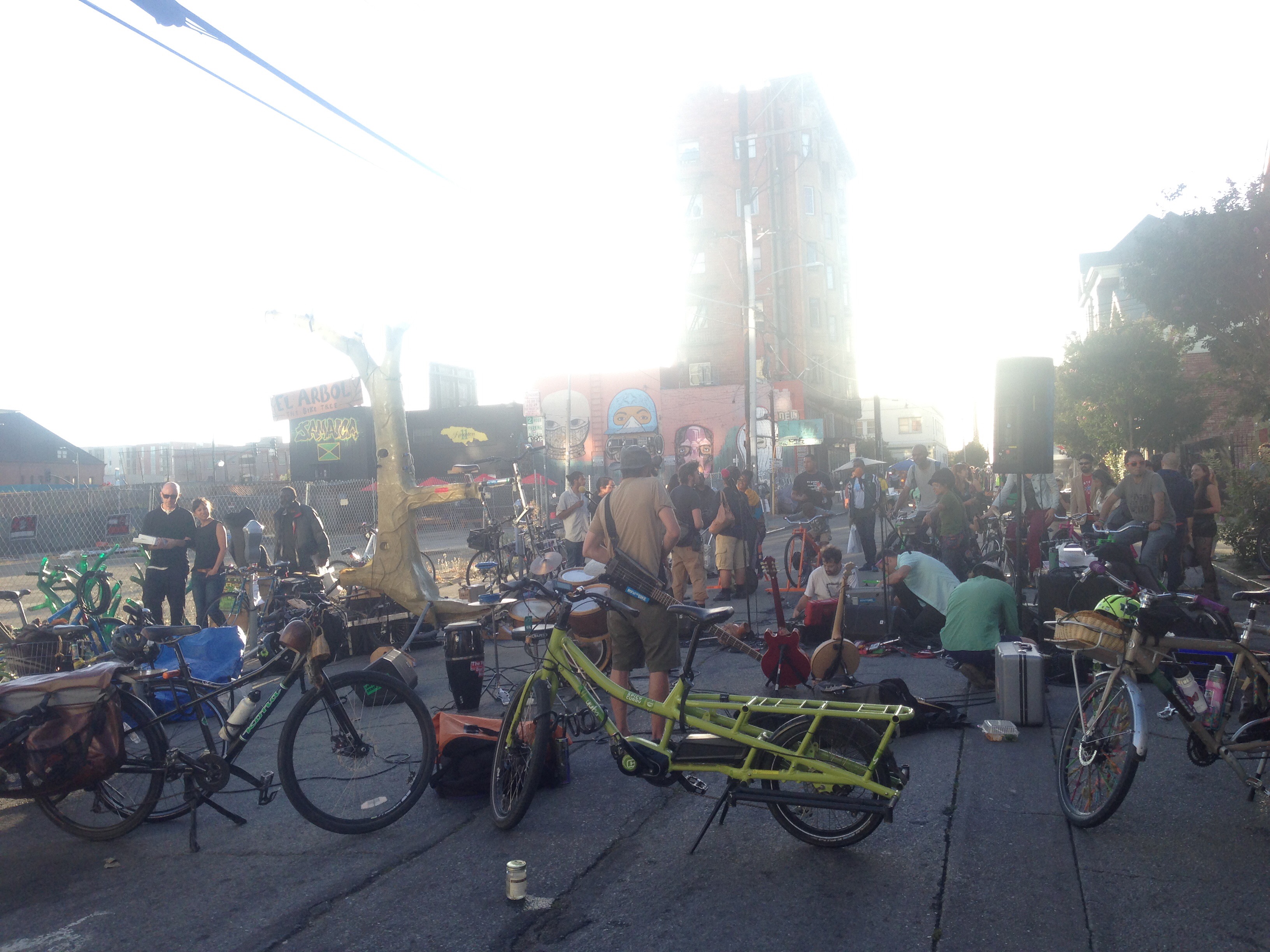 BUT! Our shows were still not over, we had two more to play and decided to stay together as a group at night to not end the energy or disperse. We played a Friday night gig at Oakland’s art walk called “First Fridays” and we had a 10 bicycle system instead of our typical 4. There was also a huge double decker bicycle called “El Arbol” or “The Tree” that lights up and is also a generator bicycle as well. It was a beautiful show and we had an incredible turnout.