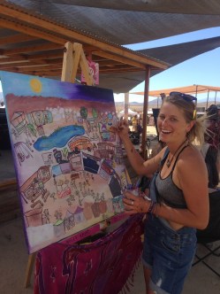 This is my third festival with them. This year I decided to be apart of the Art Auction where 21 artists get together to do live painting throughout the festival. At the end, the pieces are put on display for a silent art auction where half the proceeds go to the music education fund in Joshua Tree. Its an amazing way to engage artists and the community. I love that the festival puts such value on the visual arts.